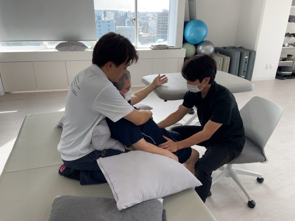 講習会前日には、3名のご利用者様のリハビリに鮎川先生とご一緒に入っていただき、